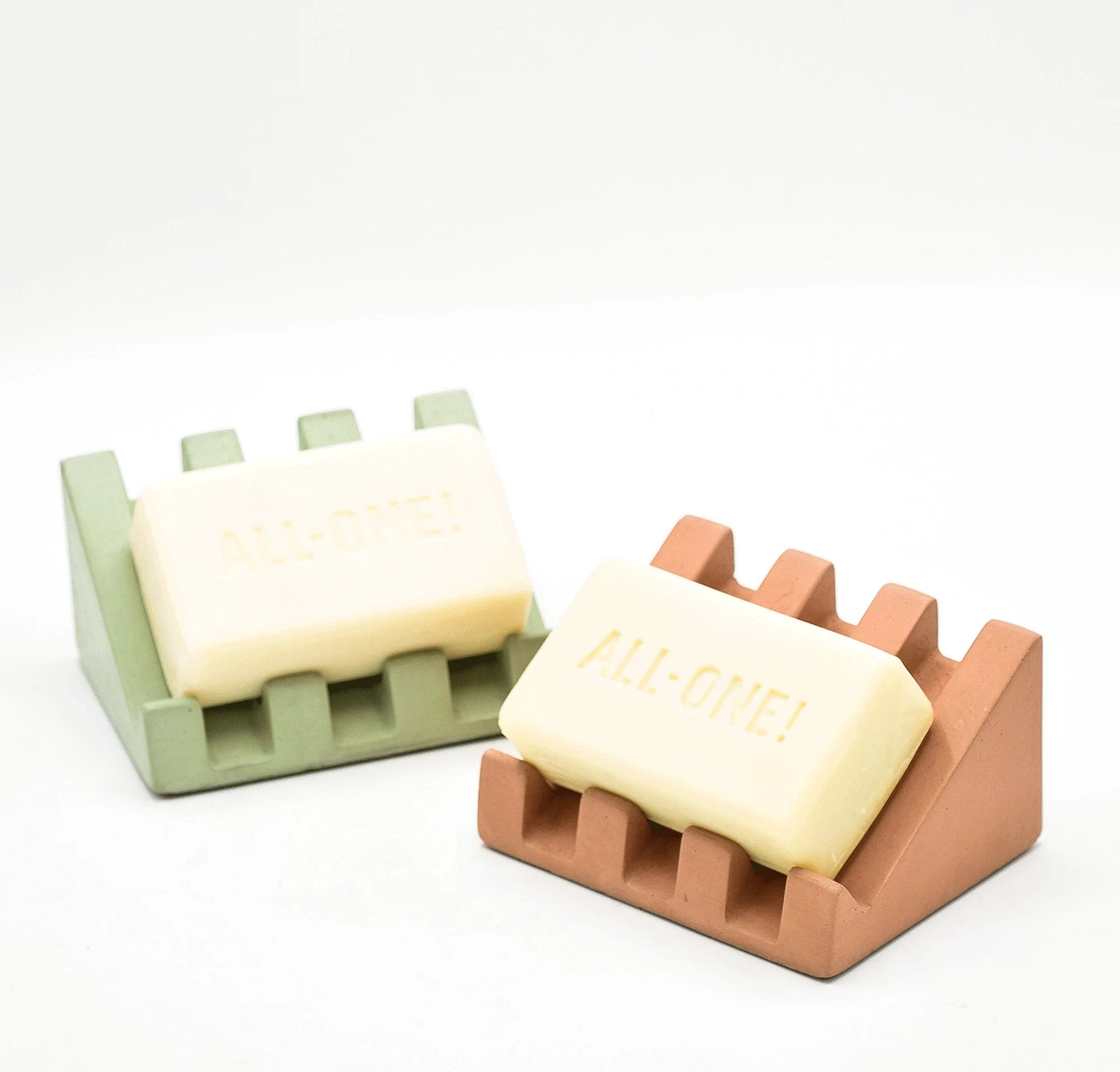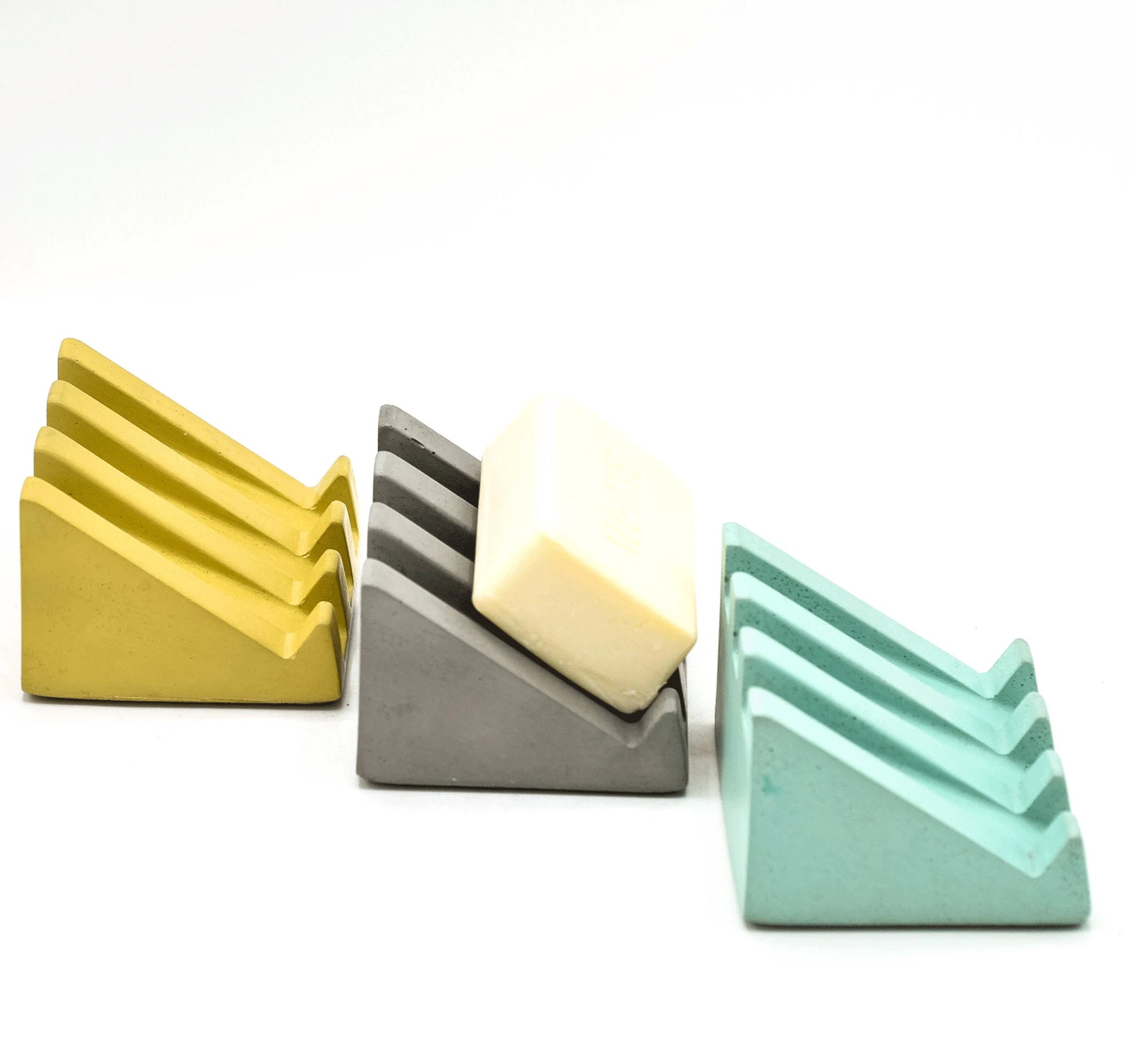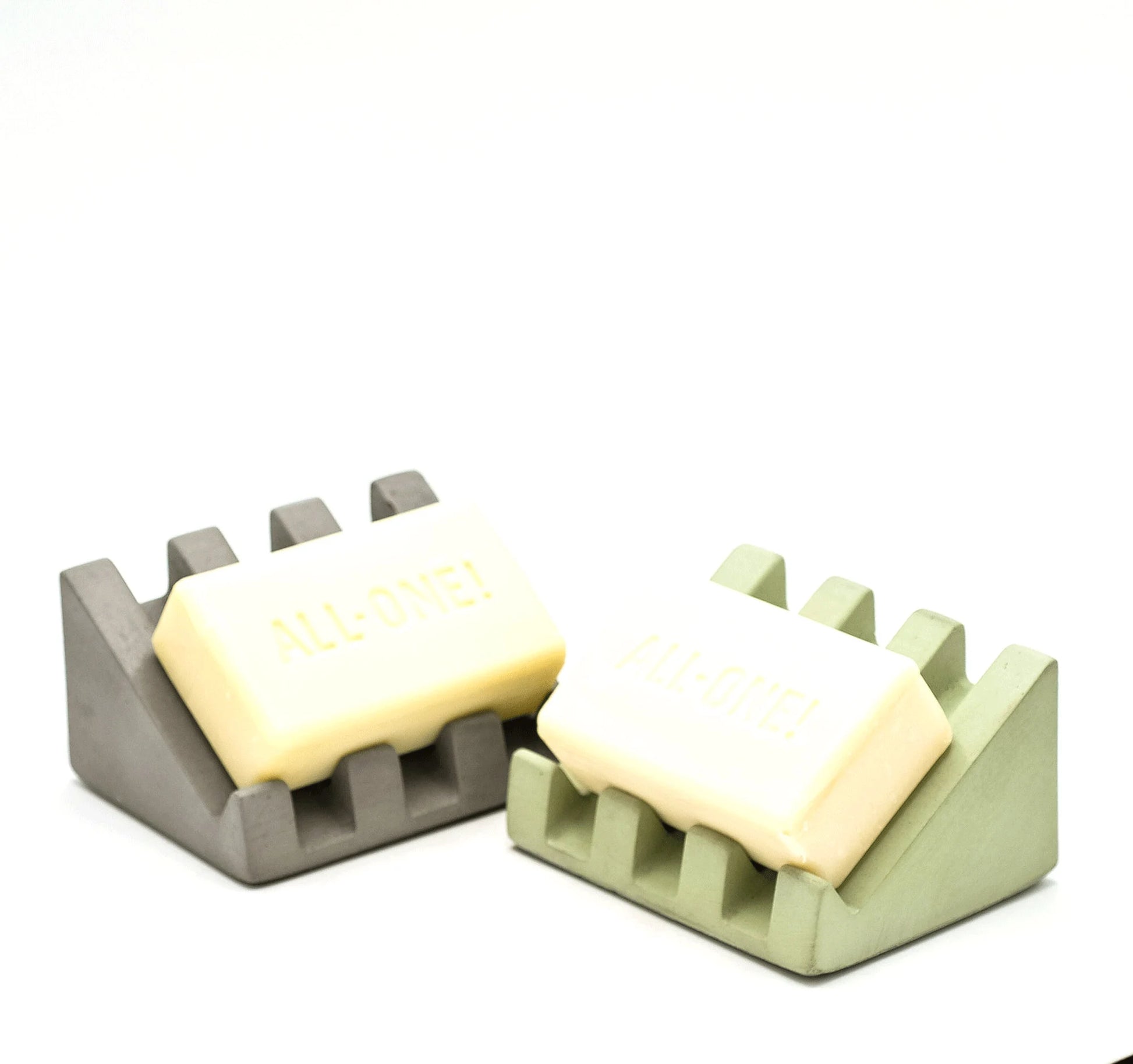 This Concrete Draining Soap Dish is the perfect modern accessory for your bath or kitchen counter. Smartly designed to hold all shapes and sizes of bar soap securely in place at an angle, with built in slots for draining water and suds. Also makes a great sponge holder. Available in 20 custom colors to fit with any style decor.