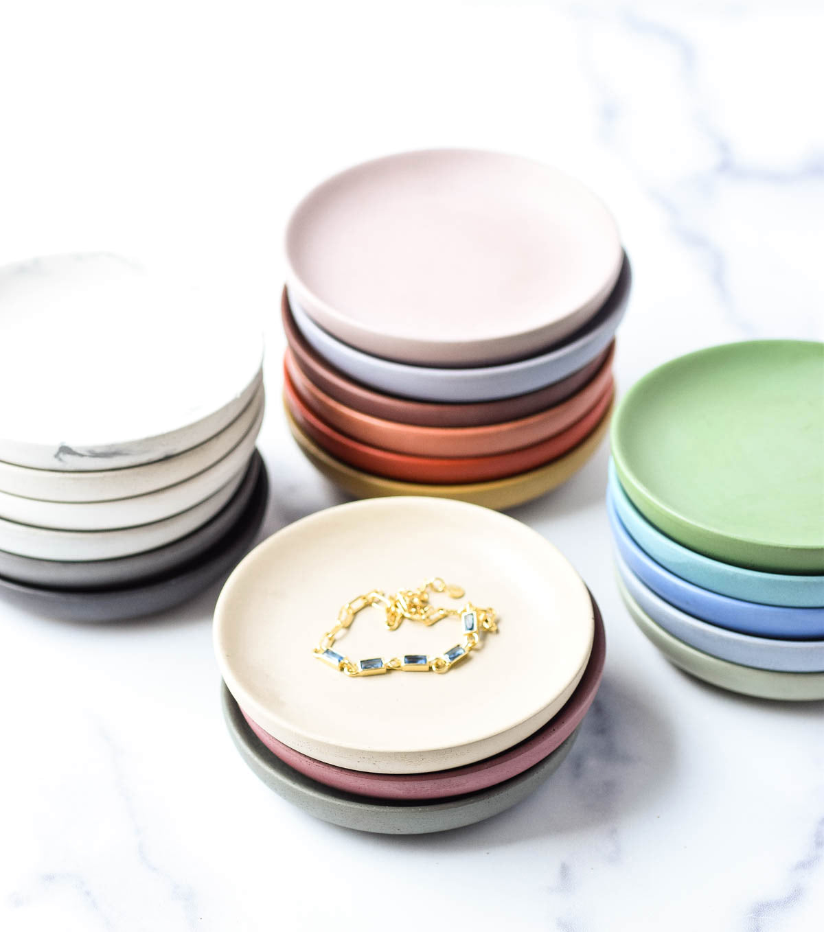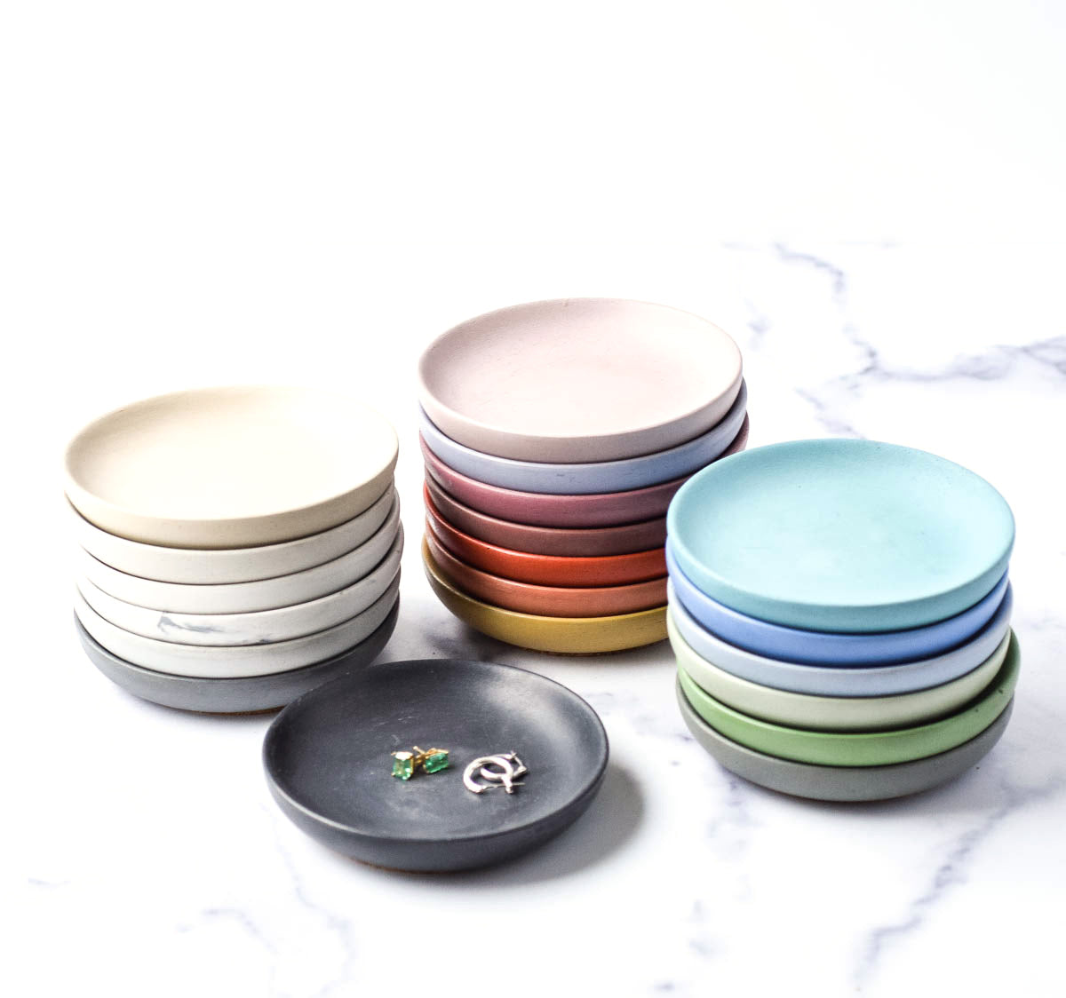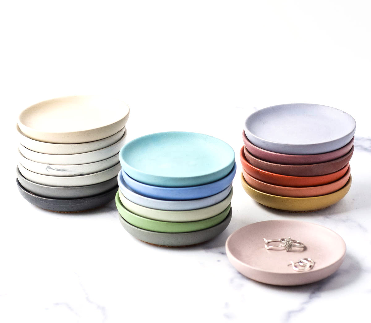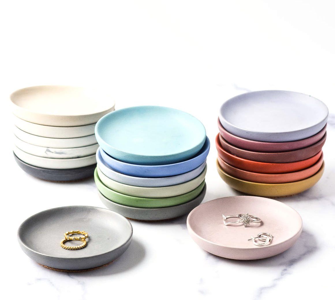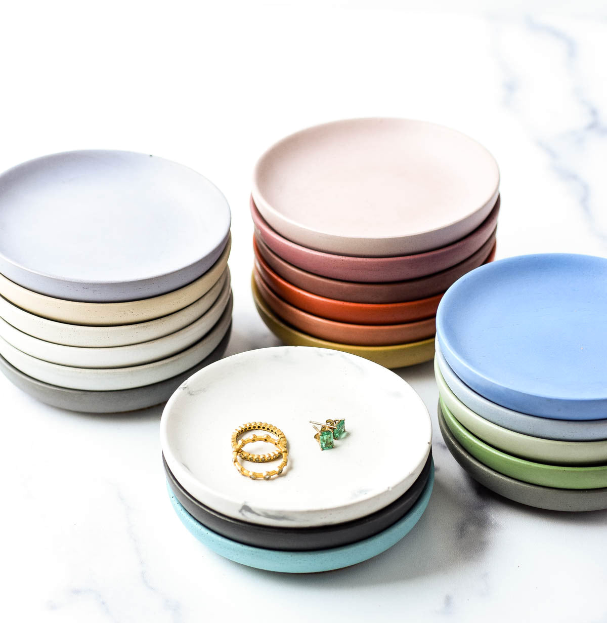 Add a touch of modern elegance to your jewelry organization with this concrete ring dish. Handcrafted with care, this minimalistic yet stylish dish is perfect for holding your favorite rings, jewelry, and small trinkets. Its sleek design and sturdy material make it a versatile and practical addition to your bedroom or bathroom decor. Whether as a gift for a loved one or a treat for yourself, this concrete ring dish is sure to add a contemporary flair to any space.