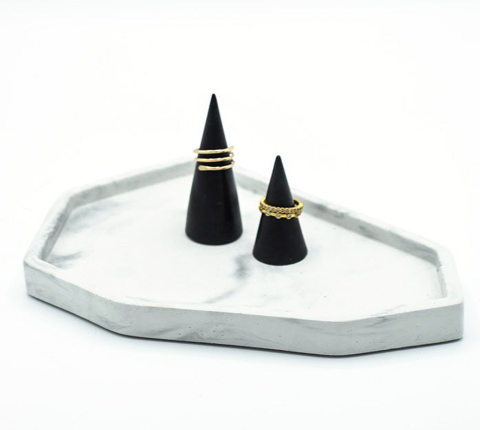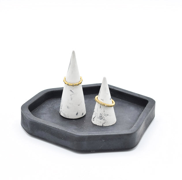 Set of 2 Concrete Ring Cones - perfect for the bathroom, bedside table, or near the kitchen sink to store your favorite rings. The modern, minimalist design is the perfect decorative and functional accent piece. Also makes a lovely engagement gift, birthday gift, or Mother's Day gift.