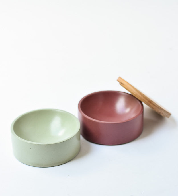 Our Concrete Salt Cellar with Wood Lid is a beautiful and functional accent to your home kitchen. Includes a FREE small bamboo spoon. This piece is offered in 20 custom colors and will be a lovely addition to your kitchen for years to come. For use as a salt cellar, sugar bowl, or other kitchen/cooking storage. Interior of the bowl is a shallow well, that holds approximately 1/3 cup. This item makes a /wonderful wedding, shower, or housewarming gift.