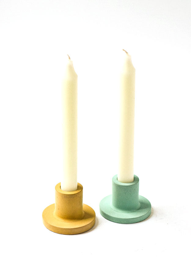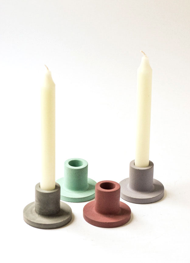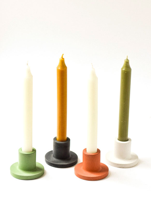 Our Concrete Taper Candle Holders will adorn your mantel or tabletop with modern, simplistic style and are ideal for creating a cozy vibe in any space. Lightweight, elegant, and available in 20 custom colors, these Concrete Candlestick Holders will fit any home decor and are great as gifts or holiday decorating!