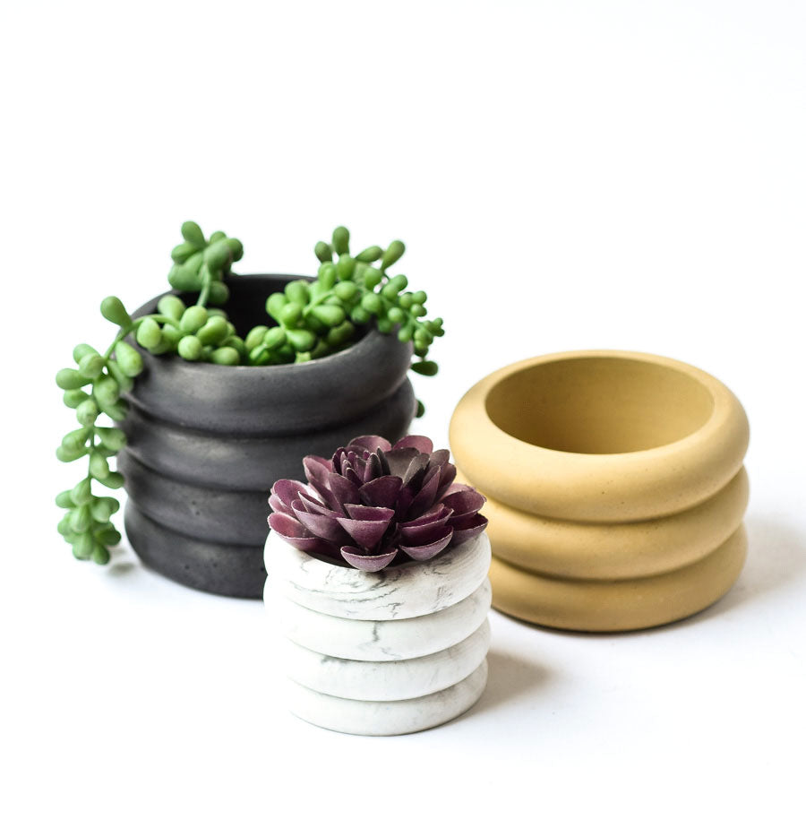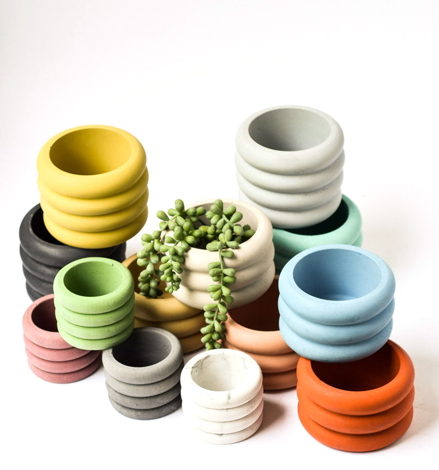 Unique and modern, our Tiered Bubble Planters are a fun way to display your favorite plant babies! This vase/planter is available in three sizes and is excellent for holding live or artificial plants, succulents, and air plants. Offered in 20 custom colors, it is a lovely addition to your living room, sunroom, foyer table, or any decor. Drainage hole included on Large and Medium sized planters. Send us a note to add a drainage hole to the Small planter!