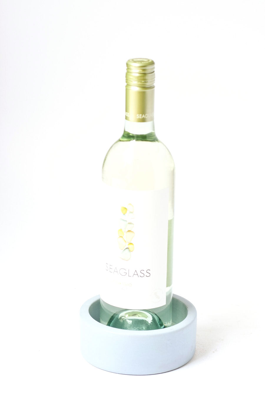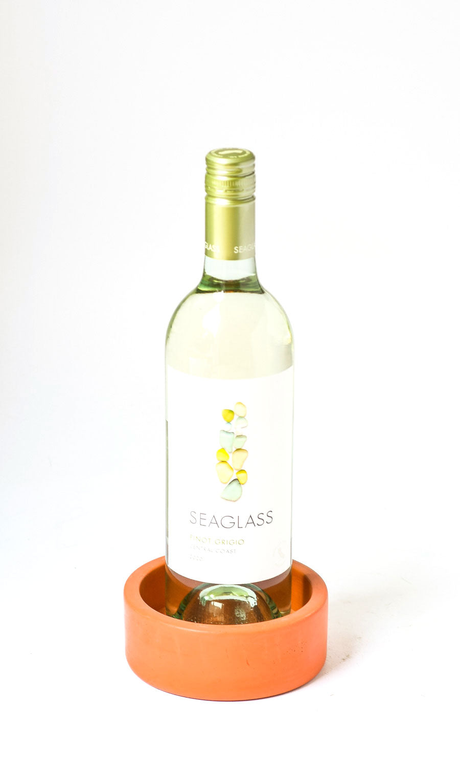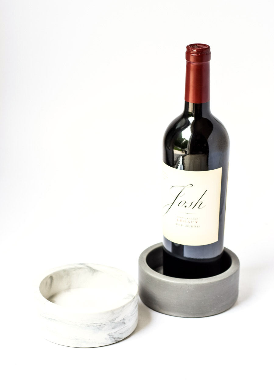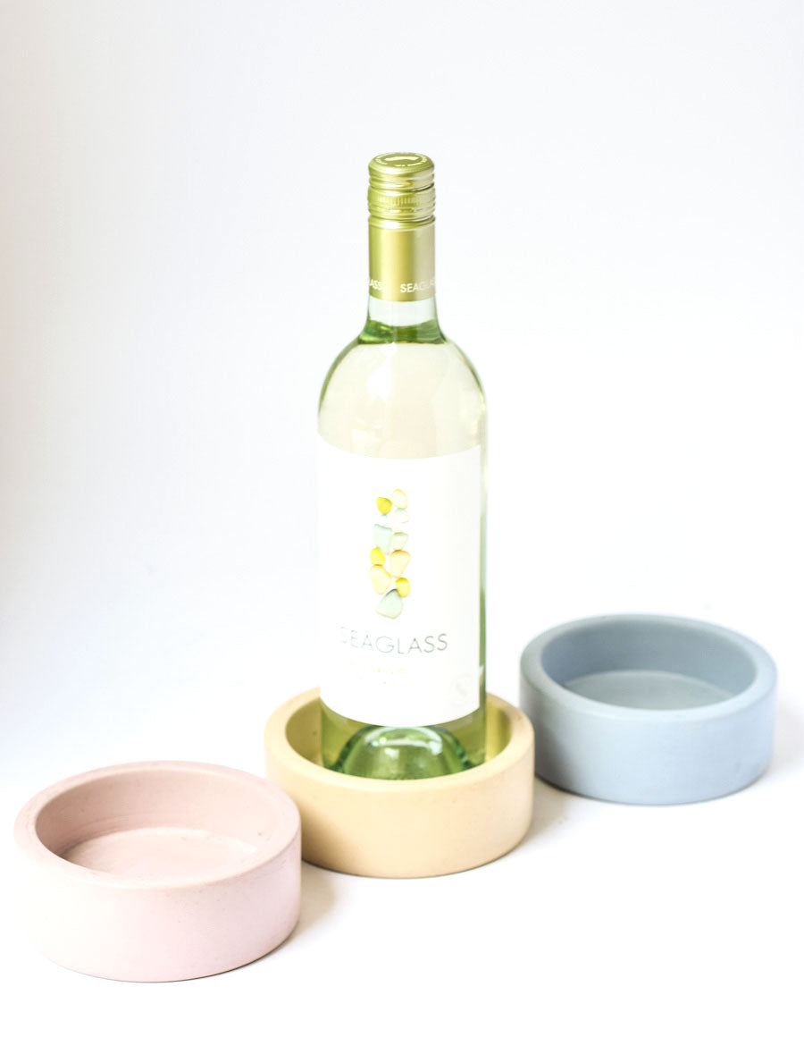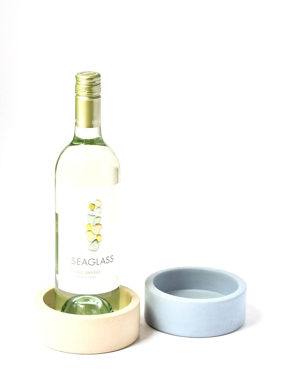 Our Concrete Wine Bottle Coaster is a modern piece, wonderful for gifting or adding to your kitchen collection. Keep your counters and tabletop safe from drips with this holder for your wine bottles! This sleek and modern handmade item is perfect for dinner parties, wedding receptions, and restaurant table serving. Available in 20 custom colors to fit your individual style and decor. Comfortably holds a standard size 750 ml wine bottle or larger 1.5 liter bottle.