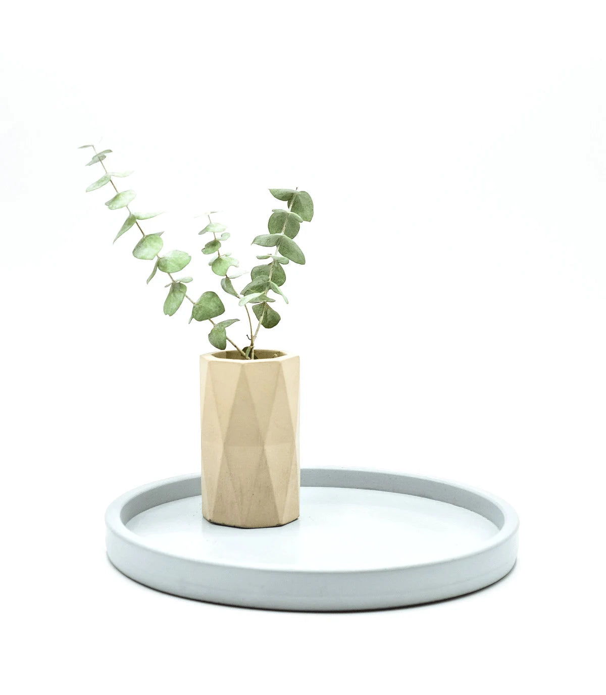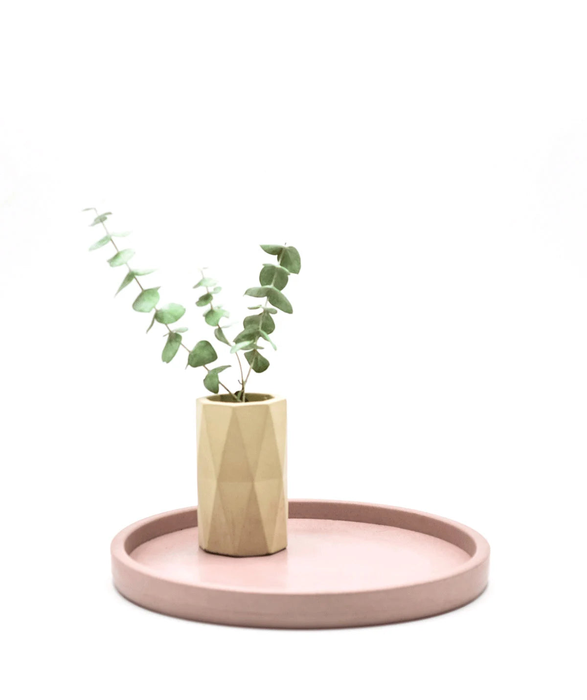 Upgrade your room decor with our multi-purpose Modern Concrete Round Tray! The modern, minimalist design makes it a great addition to any counter space, ottoman, or tabletop for displaying/organizing your favorite items. It's also the perfect size for your kitchen or bathroom counter, dresser, entry table, or vanity. Available in 20 custom colors to fit your individual style. We especially love it paired with our concrete salt cellars, geo vases, and concrete candle holders. All items shown displayed in pictures are sold separately.