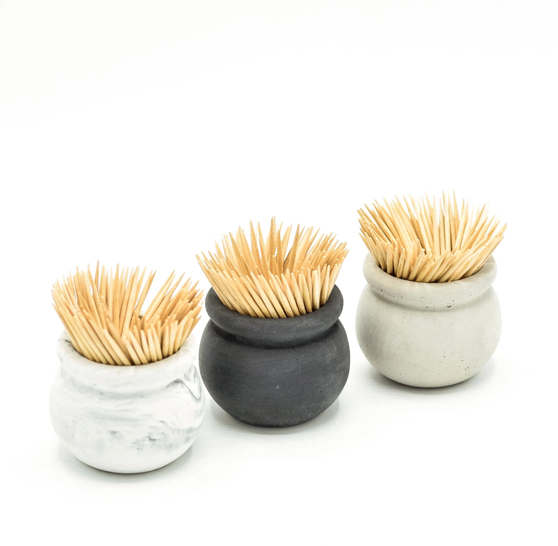Our Concrete Toothpick Holder is multi-purpose and perfect for storing your toothpicks on your kitchen counter, dining table, lazy susan, or charcuterie board. Available in 20 custom colors, this minimalist toothpick holder will fit with any kitchen decor, has a smooth finish, and is great for gifting.